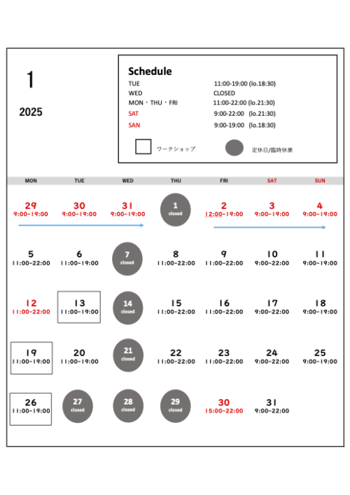 また各店とも『年末年始は変則的な営業となりますので、営業カレンダーにて確認いただきますよう、お願いいたします。』
